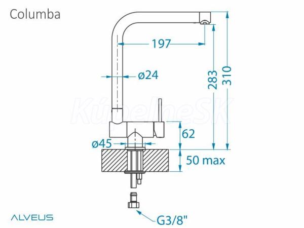 Alveus COLUMBA stojánková drezová batéria sklopná pod okno Chróm