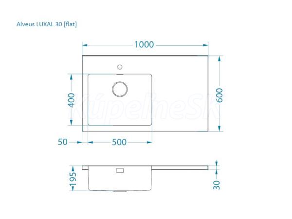 Alveus LUXAL 30 L , 1000x600 FLAT ( Okrajový profil plochý ) Vstavaný drez, s odkvapovou plochou ľavá, bez lemu