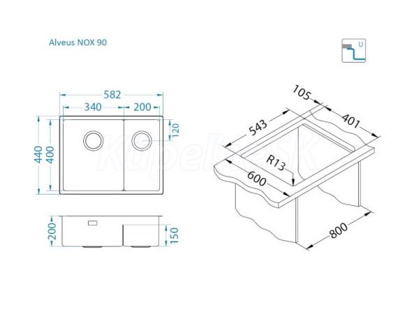 Alveus NOX 90 F/S/U BRS 582x440 Pravý MATERIÁL: BRS ROZMERY:582x440 Veľkosť vaničiek 340x400x200 / 200x400x200 Šírka skrinky Montáž F/S/U 800mm MATERIÁL: BRS ROZMĚRY:582x440 Velikost vaniček 340x400x200 / 200x400x200 Šířka skříňky Montáž F/S/U 800mm