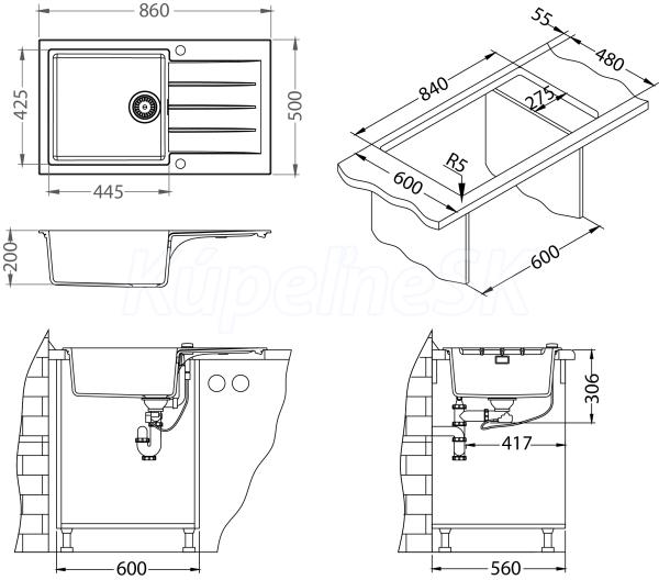 Váha: 1,15 Kg Vestavěný dřez, univerzál.