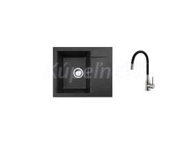 Alveus SET ALVEUS GEM 20/91 + BATERIE MINTAS 91 BRS Vestavěný dřez, univerzál. Provedení : granitový dřez Vnější rozměr: 590 x 500 mm Rozměr vaničky: 315 x 420 x 180 mm Sítkový ventil v chromovaném provedení 3 1/2 s přepadem, sifon pro úsporu místa s odbočkou na myčku Úchyty a těsnění pro upevnění dřezu v balení S předfrézovaným otvorem pro baterii Předfrézované celkem dva otvory Návod pro instalaci v obrázcích na obale Instalace do skříňky při montáži: I- o šířce 500 mm Váha: 12 kg Rozměr balení (mm): 500x500x180 mm Baterie Mintas black BRS Vysokotlaká baterie otočné flexi ramínko rozměr:340 x 210 mm provedení: black, kartáčovaná nerez Váha: 2,5 Kg