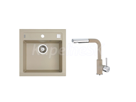 Alveus SET ALVEUS FORMIC 20/55+ BATERIE SIROS 55 Vestavěný nebo dřez se spodní montáží, univerzál. Provedení : granitový dřez Vnější rozměr: 520x510 mm Rozměr vaničky: 440x350x200 mm Excentrický sítkový ventil 3 1/2 s přepadem, sifon pro úsporu místa s odbočkou na myčku. Úchyty a těsnění pro upevnění dřezu v balení S otvorem pro baterii Předfrézovaný třetí otvor pro dávkovač saponátů Návod pro instalaci v obrázcích na obale Instalace do skříňky o šířce u montáže I: 500 mm U: 600 mm Váha: 12,7 kg Rozměr balení (mm): 695x560x267 Vysokotlaká baterie otočné ramínko vytahovací sprška rozměr:206 x 268 mm provedení: barevný nástřik