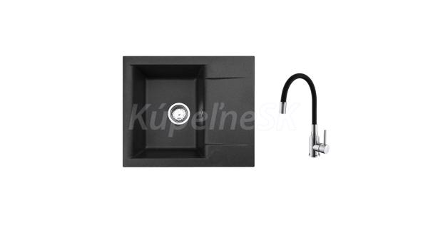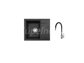Alveus SET ALVEUS GEM 20/91 + BATERIE MINTAS 91 CHR Vestavěný dřez, univerzál. Provedení : granitový dřez Vnější rozměr: 590 x 500 mm Rozměr vaničky: 315 x 420 x 180 mm Sítkový ventil v chromovaném provedení 3 1/2 s přepadem, sifon pro úsporu místa s odbočkou na myčku Úchyty a těsnění pro upevnění dřezu v balení S předfrézovaným otvorem pro baterii Předfrézované celkem dva otvory Návod pro instalaci v obrázcích na obale Instalace do skříňky při montáži: I- o šířce 500 mm Váha: 12 kg Rozměr balení (mm): 500x500x180 mm Baterie Mintas black CHR Vysokotlaká baterie otočné flexi ramínko rozměr:340 x 210 mm provedení: black, chrom Váha: 2,5 Kg