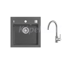 Alveus SET ALVEUS FORMIC 20/04 + BATERIE ELZA BRS Vestavěný nebo dřez se spodní montáží, univerzál. Provedení : granitový dřez Vnější rozměr: 520x510 mm Rozměr vaničky: 440x350x200 mm Excentrický sítkový ventil 3 1/2 s přepadem, sifon pro úsporu místa s odbočkou na myčku. Úchyty a těsnění pro upevnění dřezu v balení S otvorem pro baterii Předfrézovaný třetí otvor pro dávkovač saponátů Návod pro instalaci v obrázcích na obale Instalace do skříňky o šířce u montáže I: 500 mm U: 600 mm Váha: 12,7 kg Rozměr balení (mm): 695x560x267 Elza Vysokotlaká baterie otočné ramínko rozměr:216 x 351 mm provedení: BRS