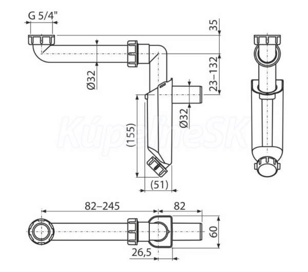 >>  Obchod s inštalačným materiálom  >>  Sifóny - Výpuste - Vpuste  >>  Sifón umývadlový  >>  ALCA Sifón umývadlový nábytkový DN32 s prevlečnou maticou 5/4"