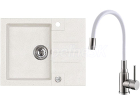 >>  KUCHYNE - Kuchynský tovar  >>  Kuchynské drezy  >>  AKCIOVÉ SETY (drez+batéria)  >>  Alveus SET ALVEUS granit drez ROCK 30 Biely+batéria MINTAS Brúsená Nerez/Biela