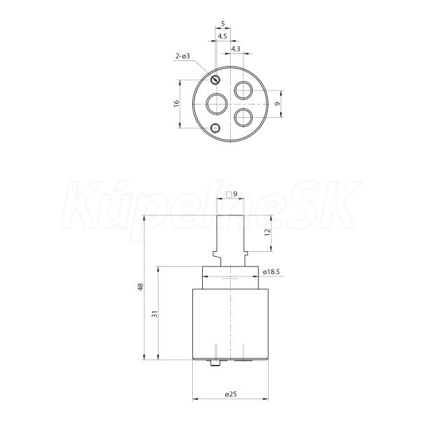 >> Batérie vodovodné >> Náhradné diely-Kartuše-Výtoky-Esíčka >> Kartuše do vodovodných batérií >> Sapho Miešacia kartuša 25mm