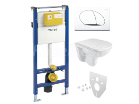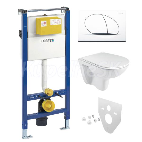 Mereo WC set - Rimless WC oblé, modul pre sadrokartón, biele oválne tlačidlo MM02NSETRS110