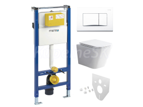 Mereo WC set - Rimless WC hranaté, modul pre sadrokartón, biele hranaté tlačidlo MM02NSETR