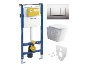Mereo WC set - Rimless WC hranaté, modul pre sadrokartón, chróm hranaté tlačidlo matné MM0