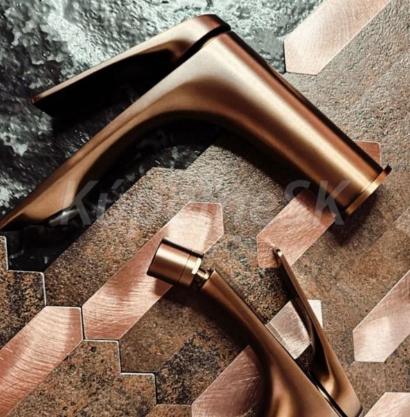 Moderná umývadlová batéria v farbe brúseného medeného kovu je výnimočný akcent, ktorý dodá každej kúpeľni eleganciu. Jej dizajnová forma a starostlivo spracované detaily zdôrazňujú luxusný charakter interiéru, zatiaľ čo brúsené prevedenie účinne maskuje drobné škvrny či odtlačky prstov. Vyrobená z odolného mosadzu, batéria zaručuje dlhú životnosť, spoľahlivosť a odolnosť voči korózii. Model je určený na montáž na umývadlo a jeho ergonomický úchyt umožňuje pohodlnú reguláciu teploty a tlaku vody.