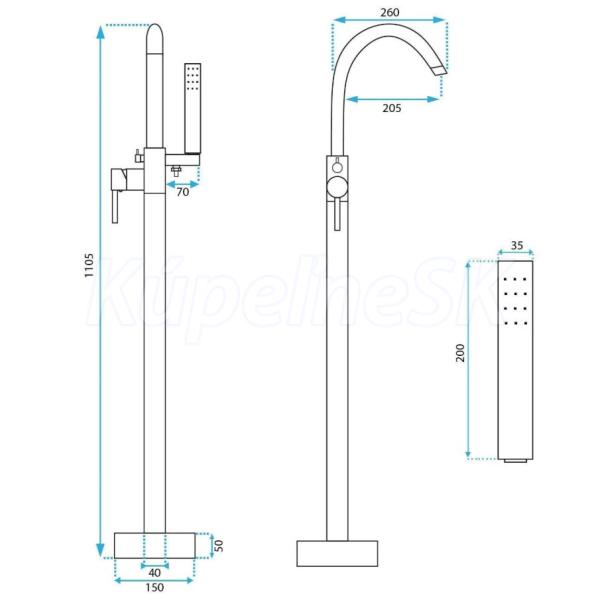 >>  Batérie vodovodné  >>  Vaňové batérie  >>  REA Lungo voľne stojaca vaňová batéria do podlahy s ručnou sprchou Chróm REA-B7497