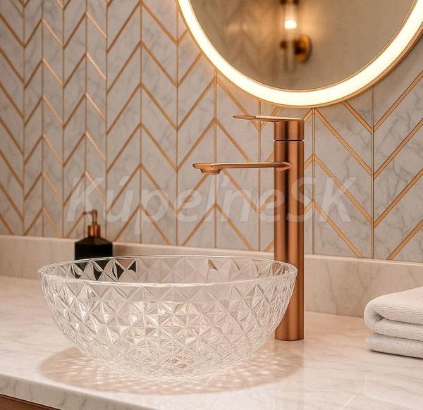 REA Storm vysoká stojánková umývadlová batéria bez výpuste brúsená Meď