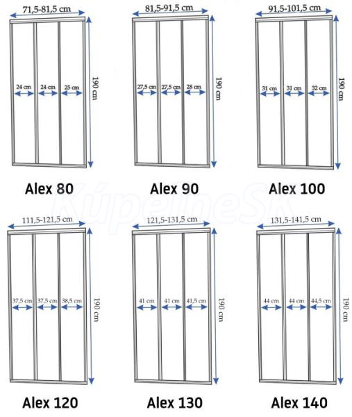Dvere sprchové Alex sú m spojením estetiky kúpeľne a komfortu sprchovania. Sú vyrobené z najkvalitnejšieho tvrdeného skla a majú modernú povrchovú úpravu EasyClean. Dvere Alex pozostávajú z jedného pevného prvku a dvoch posuvných prvkov. Pôvodne je smer dverí pravý. Aby ste zmenili smer dverí na ľavý, je potrebné odskrutkovať vertikálne profily v pohyblivom okraji, s vystupujúcou lištou ako kľučkou, a presunúť ich na druhú stranu skla.