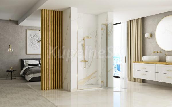 REA Hugo krídlové dvere do niky s pev. stenou 80x200 cm sklo Číre rám brúsené Zlato REA-K8