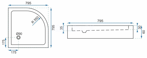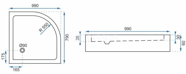 REA Look štvrťkruhová sprchová vanička 800x1000x60 mm akrylátová Biela Pravá