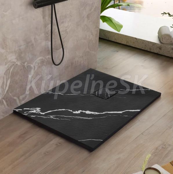 REA Magnum Carrara štvorcová sprchová vanička 900x900x25 mm so sifónom SMC Čierna REA-K700