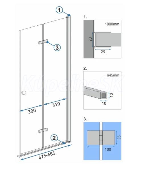 Sprchová kabína Fold pozostáva zo dvoch skladacích sklenených dverí, ktoré sú ukončené elegantnými chrómovanými prvkami. Tento model je ideálnym riešením pre malé a neštandardné kúpeľňové priestory. Každé krídlo je možné sklopiť na stranu.