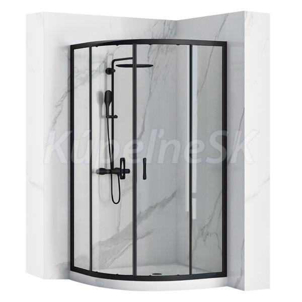 REA Look Black štvrťkruhový sprchový kút 90x90x190 cm, posuvné dvere, sklo Číre
