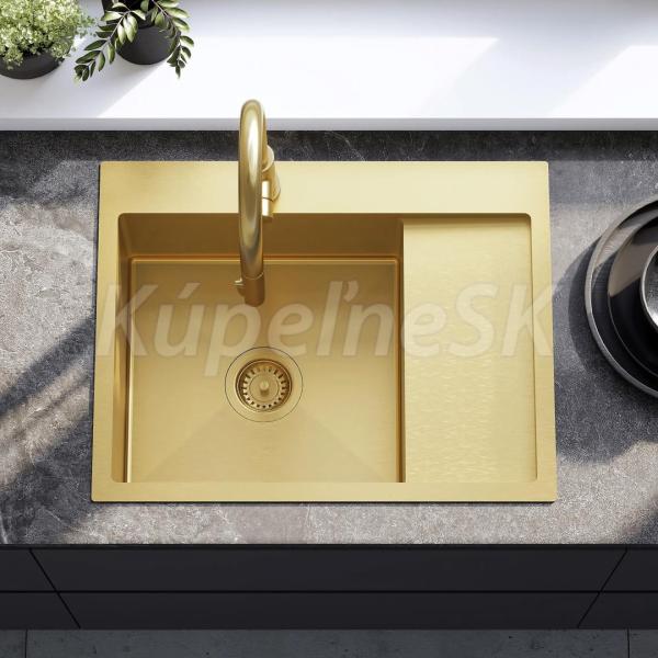REA Fin nerezový drez so sifónom 620x480x185 mm brúsené Zlato ZLE-06013
