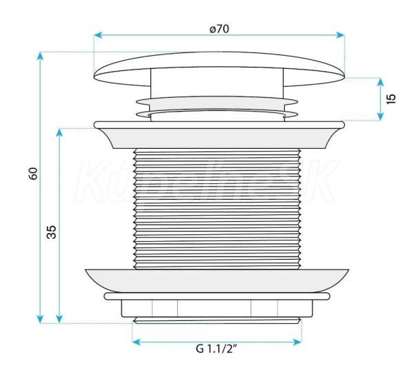 Korek klik-klak do vaní bez predradnice, vyrobený z vysoko kvalitného mosadzu. Ide o univerzálne riešenie, ktoré pasuje do každej vane so štandardným odtokovým otvorom s priemerom 48 mm – vhodný pre modely s prepadom aj bez neho.