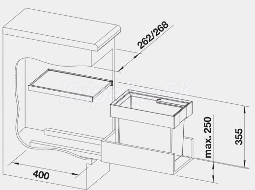 výška zabudovania 370 mm od dna zásuvky, hĺbka zabudovania 400 mm