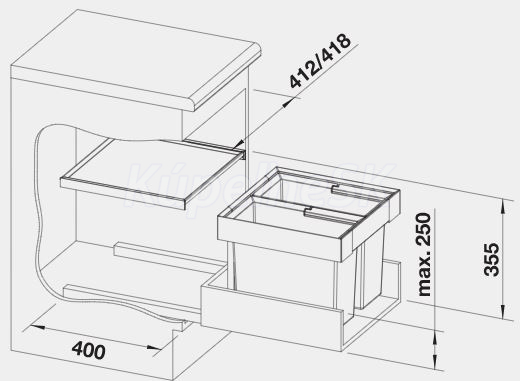 výška zabudovania 370 mm od dna zásuvky, hĺbka zabudovania 400 mm