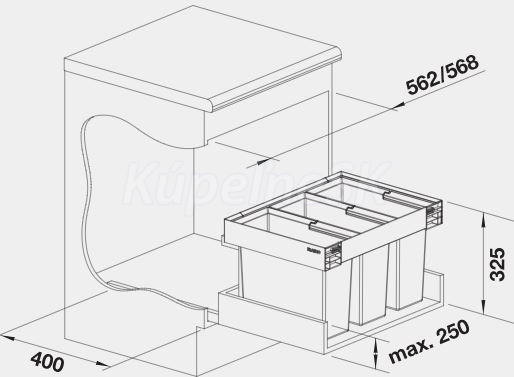 výška zabudovania 370 mm od dna zásuvky, hĺbka zabudovania 400 mm