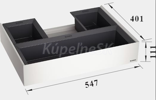pri plánovaní treba zohľadniť výšku zabudovania košového systému, hĺbku drezu a z toho vyplývajúci min. rozmer pre spodnú skrinku.