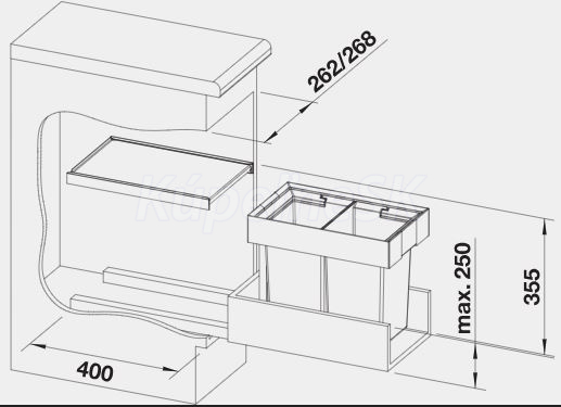 >>  KUCHYNE - Kuchynský tovar  >>  Sortery a košové systémy  >>  Čelný výsuv  >>  Blanco košový systém FLEXON II 30/2
