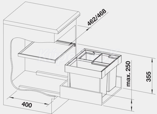 výška zabudovania 370 mm od dna zásuvky, hĺbka zabudovania 400 mm