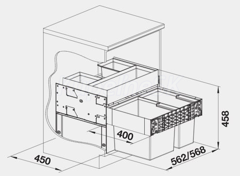 Pri plánovaní treba zohľadniť výšku zabudovania košového systému, hĺbku drezu a z toho vyplývajúci min. rozmer pre spodnú skrinku.