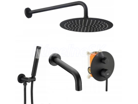 Predstavujeme Vám nový model vstavaného setu z rady Lungo, model Lungo Čierny. Vďaka univerzálnosti a úžasným estetickým vlastnostiam je set vynikajúcou voľbou pre majiteľov ktoréhokoľvek kúpeľne. Moderný tvar prvkov nad stenu bol laserom pokrytý štyrikrát lakovanou vrstvou najkvalitnejšieho materiálu v matnej čiernej farbe. Vďaka tejto technológii je batéria chránená pred koróziou, matnením a zmenami odtieňa. V súprave je ultra tenký 2mm dažďový sprchový hlavica obdĺžnikového tvaru s priemerom 25cm, batéria s prvkami na stenu aj nad stenu, s nástavcom na rukoväť a bodovým setom. Set Lungo je ideálny pre ľudí, ktorí hľadajú originálne riešenia a chcú vytvoriť originálnu a jedinečnú kúpeľňu svojich snov.