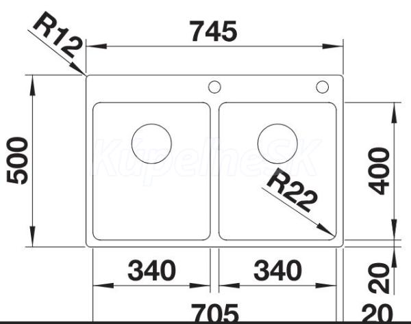 Blanco vstavaný drez do roviny ANDANO 340/340-IF/A nerez 74,5x50 cm InFino s PushControl h