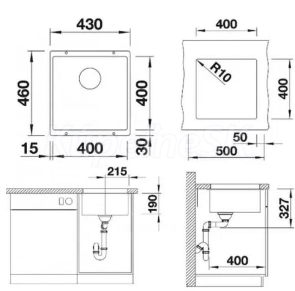Blanco drez pod prac.dosku SUBLINE 400-U SILGRANIT 43x46 cm tartufo