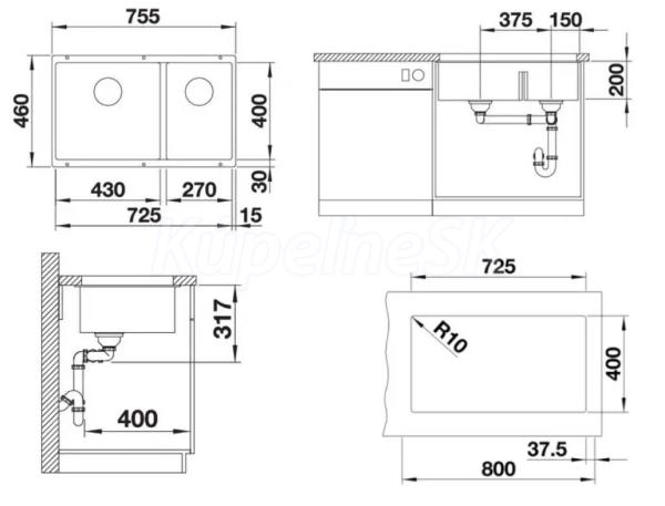 Blanco drez pod prac.dosku SUBLINE 430/270-U SILGRANIT InFino manuál káva