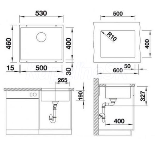 Blanco drez pod prac.dosku SUBLINE 500-U SILGRANIT 53x46 cm InFino manuál sivá skala