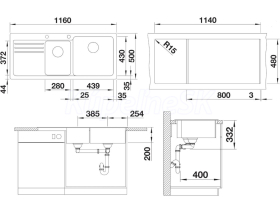 >>  KUCHYNE - Kuchynský tovar  >>  Kuchynské drezy  >>  Granitové drezy  >>  Blanco vstavaný drez NAYA 8 S SILGRANIT 116x50 cm sivá skala 519655 väčšia vanička vĽavo