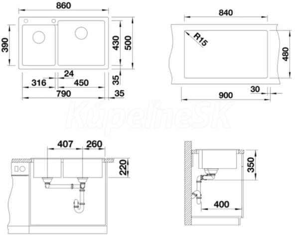 Blanco vstavaný drez PLEON 9 SILGRANIT 86x50 cm káva väčšia vanička vPravo