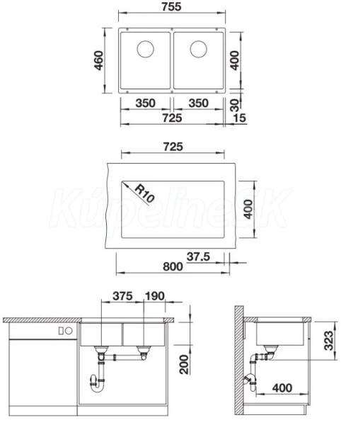 Blanco drez pod prac.dosku SUBLINE 350/350-U SILGRANIT 75,5x46 cm InFino manuál sivá skala