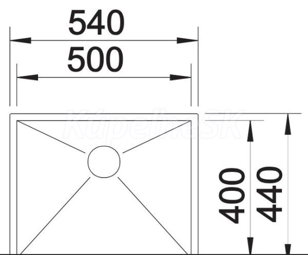 Blanco drez pod prac.dosku ZEROX 500-U nerez 54x44 cm hodvábny lesk