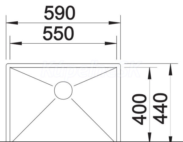Blanco drez pod prac.dosku ZEROX 550-U nerez 59x44 cm hodvábny lesk