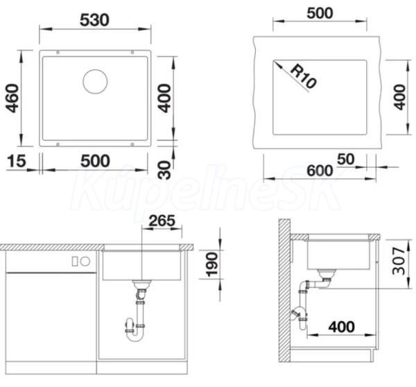 CU = drez bez sifónu Blanco drez pod prac.dosku SUBLINE 500-U CU SILGRANIT čierna