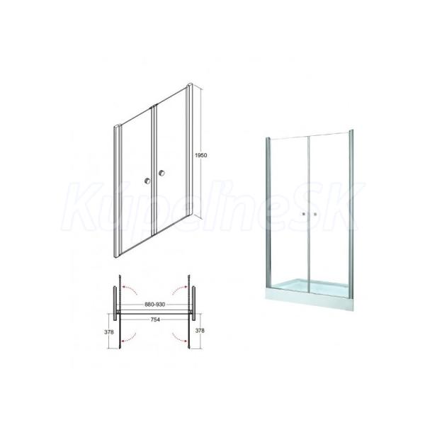 Besco SINCO DUE Sprchové dvere 2-krídlové 90x195cm, Univerz. rám Chróm Al, sk.číre 6mm