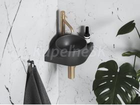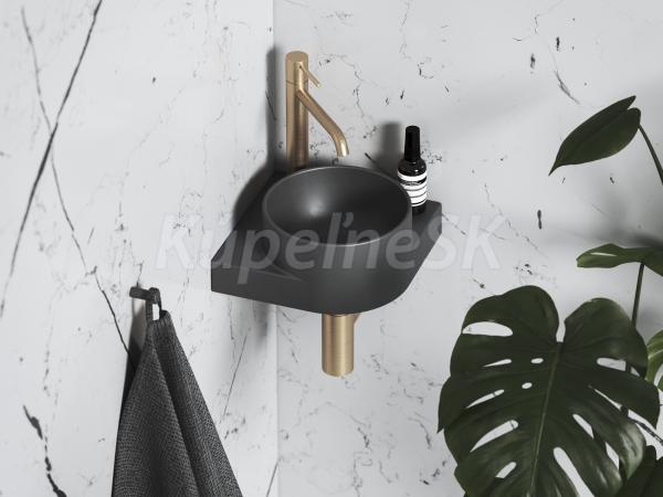 Keramické rohové umývadlo Yard k inštalácii na konzolu Yard, bez prepadu. Antracit vyhotovenie. S otvorom pre batériu.