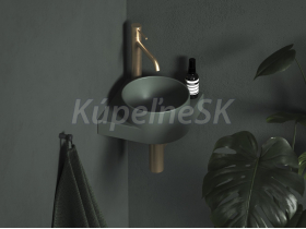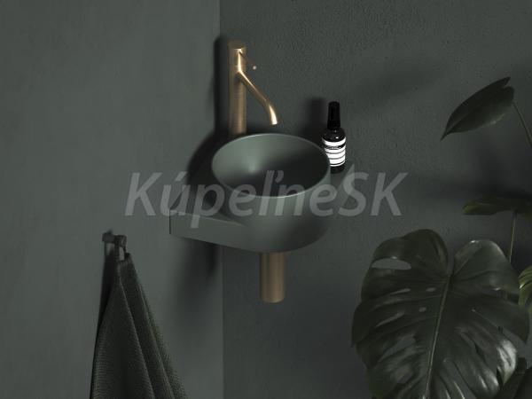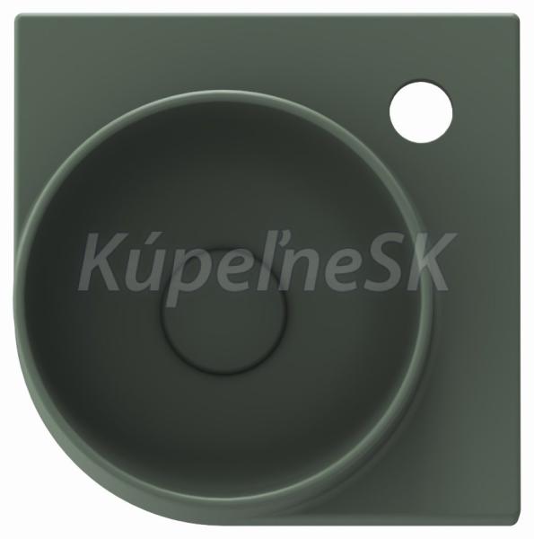 Keramické rohové umývadlo Yard k inštalácii na konzolu Yard, bez prepadu. Grey Green vyhotovenie. S otvorom pre batériu.