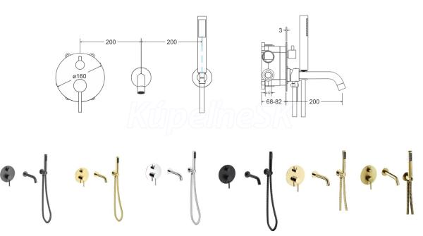 - Set obsahuje podomietkovú batériu, vývod zo steny s držiakom, ručnú sprchu a hadicu