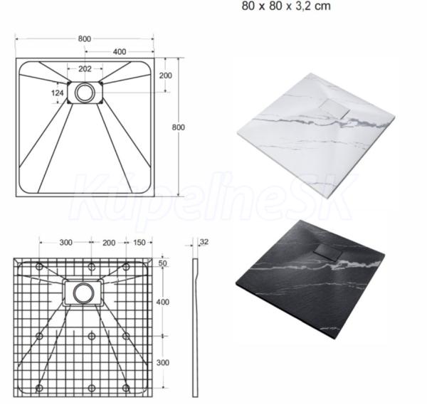 BESCO Štvorcová sprchová vanička VEXO MARBLE 80x80x3,2 cm Biela