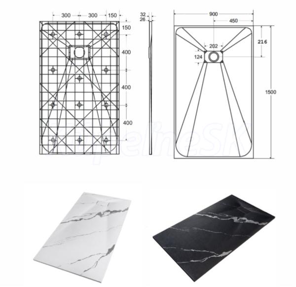 Besco Obdĺžniková sprchová vanička VEXO MARBLE 90x150x3,2 cm Biela