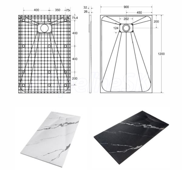 Elegantná ultratenká sprchová vanička VEXO MARBLE ČIERNA je vyrobená zo špeciálneho SMC materiálu. Dodáva sa vrátane sifónu, ale bez nožičiek. Krytka sifónu je súčasťou balenia.